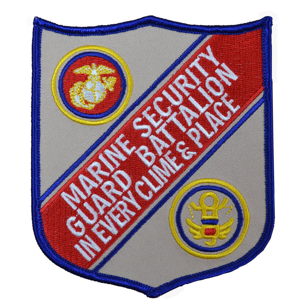 This MSG Embassy Security Bn Patch represents a battalion sized organization of U.S. Marines whose detachments provide security at American embassies, American consulates and other official U.S Government offices. Embroidered on the patch is the Eagle, Globe, and anchor as well as the words ‘Marine Security Guard Battalion – In Every Climb & Place’, in reference to the units mission of serving across the world.