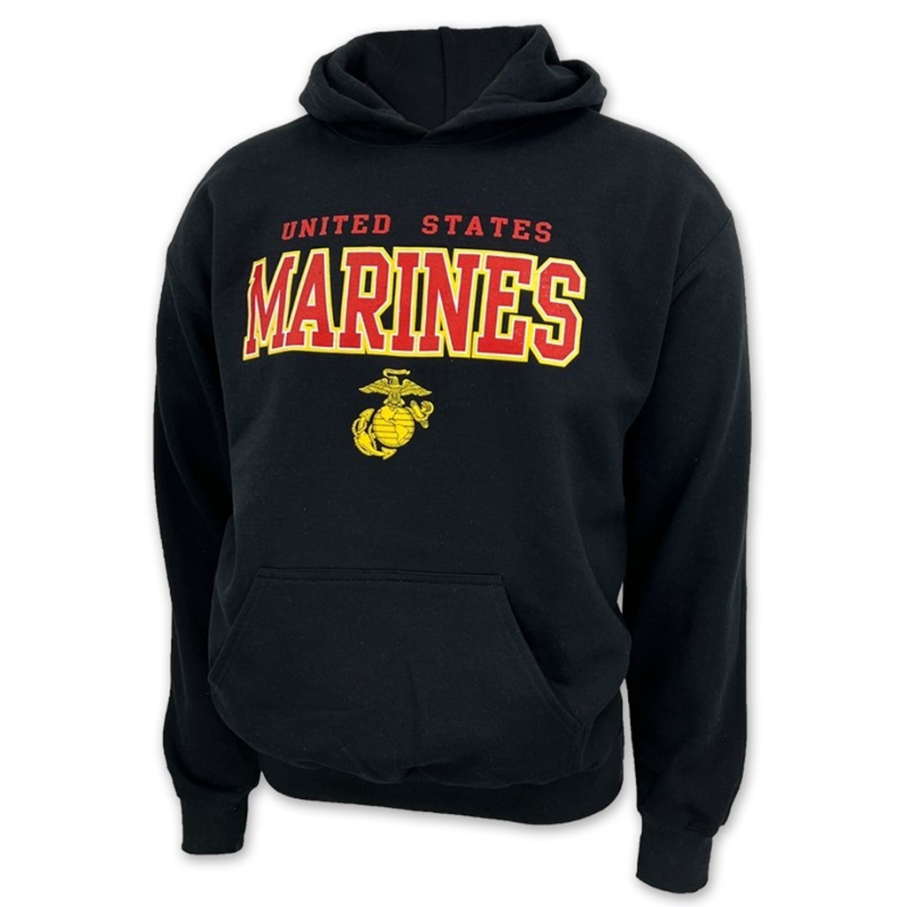 Honor the legacy of the United States Marine Corps with this bold and comfortable black hoodie. Designed with striking red and gold print, this sweatshirt is a standout tribute to the values and strength of the USMC. Whether you’re an active Marine, a proud veteran, or a supporter, this hoodie lets you wear your pride on your sleeve.