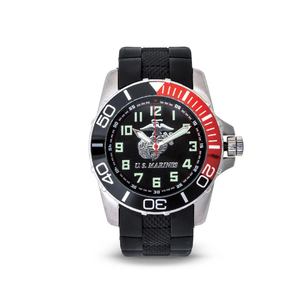 This USMC watch is water resistant up to 200 meters deep and includes a rotating bezel. Officially licensed by the United States Marine Corps; this time piece makes a great gift for the Marine Veteran in your family.