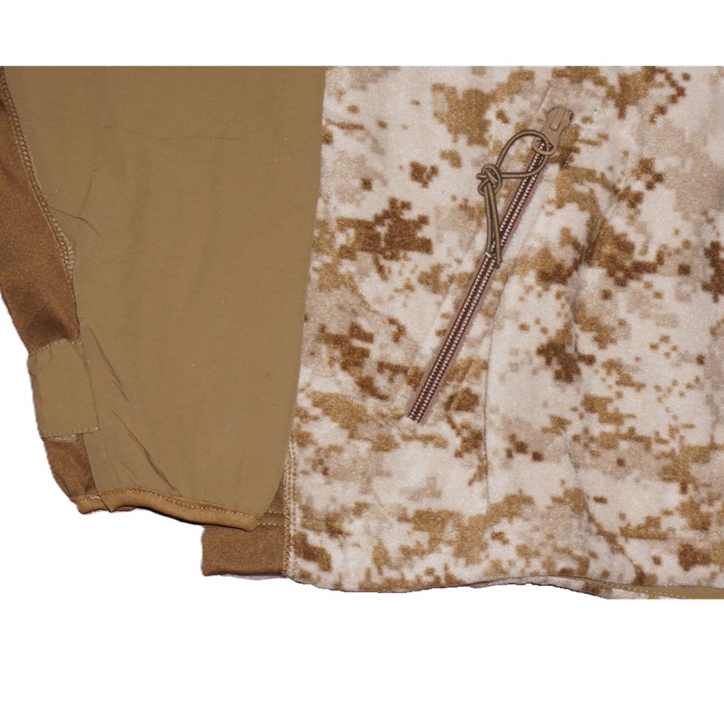 The USMC Wind Pro MARPAT Desert Fleece Jacket is a key element of the Marine Corps Mountain/Cold Weather Clothing System. It’s designed for intermediate to cold-weather operations in rugged and harsh environments. Engineered to provide wind resistance, breathability, and water repellency, this jacket represents an improvement over previous fleece designs. It ensures comfort in climates ranging from wet-cold conditions to high-altitude mountain terrain.